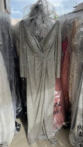 Floral Fantasy: Silver Sequin Long Sleeve Gown