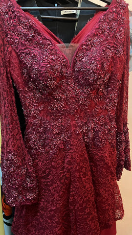Vintage Blush: V-Neck Old Rose Dress with Alluring Stone Accents