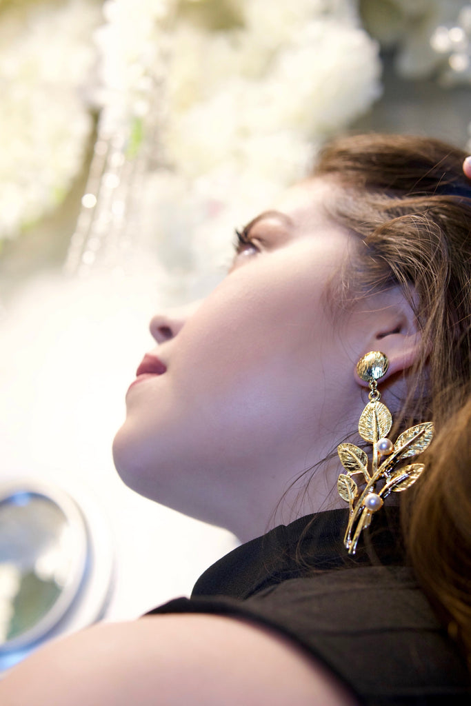 Inspirados en la naturaleza, los aretes Hojas de Oro combinan un diseño botánico con detalles perlados que transmiten frescura y elegancia. Una pieza sofisticada que realza cualquier look con un toque natural y delicado.