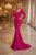Vestido rosado fuscia con manga largas y cuello V
