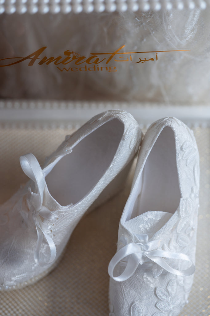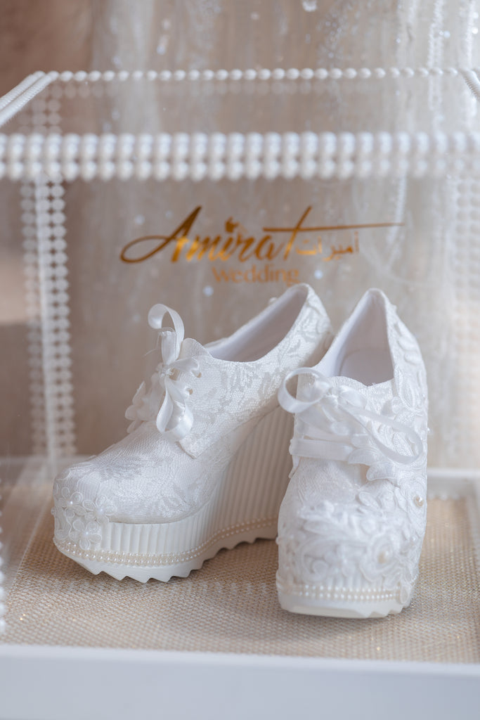 Tennis estilo tacon con encaje, rosas grandes y hojas bordadas y perlas en el borde posterior (blanco y ivory)