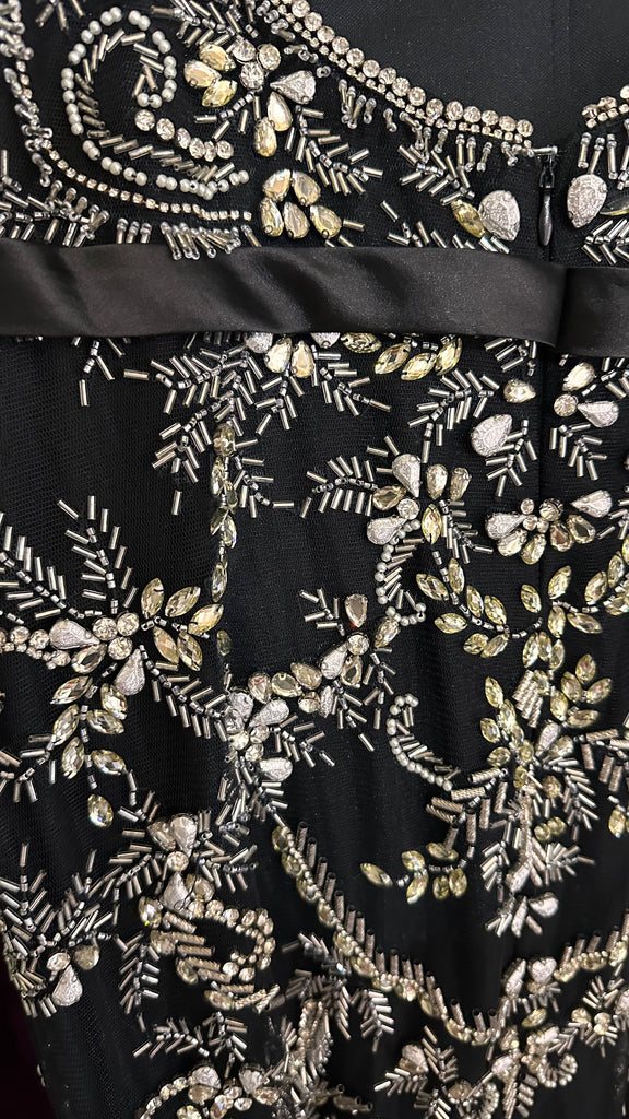 Lujo y sencillo: estas impresionantes gemas son el perfecto aderezo para el diseño sencillo de este vestido de escote V con delicadas tiras delgadas. Luce regia y distinguida con esta prenda para ocasiones especiales.
